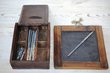 Schreibutensilien GrundschuleSchreibzeug: Alte Schreibutensilien für die Grundschule in den 1930 bis 1950er Jahren, hier Schiefertafeln, ein Griffelkästchen, ein...