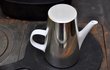 Thermoskanne 1970erIsolierkanne: Verchromte Thermoskanne, typisch mit Kunststoffteilen für die 1970er Jahre. Deckel, Griff und Ausguss sind aus braunem Kunststoff....