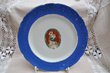 Jahreszeitenteller "Juli"Teller: Kleiner, ungemarkter Jahreszeitenteller "JULI" mit kräftig blauer "Fahne". Im "Spiegel" ist ein nacktes Kind mit Gartenutensilien abgebildet....