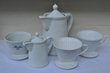 Weißporzellan KaffeefilterFilter: Konvolut Weißporzellanfilter, hier 2 x Kaffeekannen und 3 x Filter. Große, dickwandige 2 Liter Kaffeekanne mit gesichertem Deckel. Am Boden im...