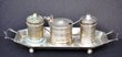 Salz & Pfeffer MenageSalz & Pfefferstreuer: Kleine Gewürzménage EPNS (elektro plated Nickel Silber), hier Salz- Pfeffer- und Senfbehälter auf einem kleinen Tablett mit 4...