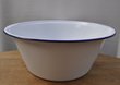 Weiße Email WaschschüsselSchüssel: Große Emailschüssel mit Blaurand. Maße: 41 cm Durchmesser; 17 cm H. Gewicht: 1500 Gramm. Verfügbarkeit: Diverse Emailschüsseln und...