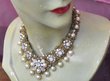 Halskette Modeschmuck 1950erModeschmuck: Sehr aufwendig gearbeitete breite Modeschmuck-Halskette aus den 1950er Jahren mit falschen und anderen Perlen sowie dunkelblauen Blümchen...