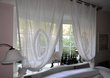 Gardine Vorhang FiletstickereiGardinen: Großmutters Handarbeit, hier ein Paar zarte Gardinenschals aus Grasleinen mit Spitzenbesatz und mittig eingesetzten Medaillons "tanzendes...