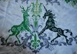 Tischdecke Kreuzstichstickerei EinhörnerTischdecke: Runde, reich in Kreuzstichstickerei bestickte Leinen-Tischdecke mit Einhornmotiven in versch. Grüntönen. Keine Flecken. Druchmesser :...