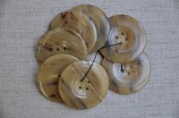 7 unverarbeitete Vierloch-Büffel-Hornknöpfe für Herrenmäntel der 1930er Jahre. Verfügbarkeit: 7 x in dieser Ausführung; ferner weitere Knöpfe für die Schneiderin.