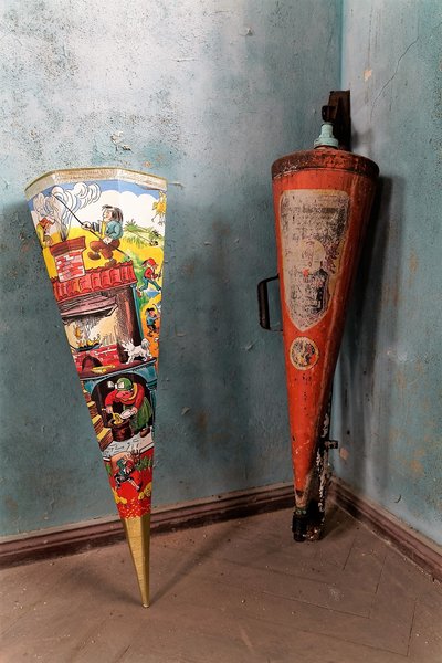 Schultüte: Große bunt staffierte Schultüte, hier mit Max & Moritz Glanzbilder-Motiven. Verfügbarkeit: 1 x in dieser Ausführung; weitere Schultüten. Ausleihgebühr für 3 Tage: 9,00 Euro. Auseleihgebühr für 3 Wochen: 12,50 Euro. Ausleihgebühr bis zu 3 Monaten: 25,00 Euro.