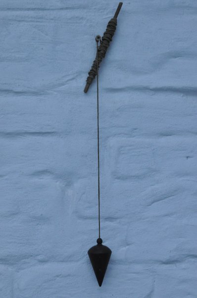 Werkzeug: Eisenlot an alter Schnur am Aufwickelstab. Maße: 4 cm Durchmesser; 8 cm H. Gewicht: 330 Gramm. Verfügbarkeit: 1 x.