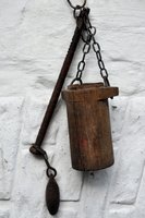Waage: Einfache Balkenwaage / Stabwaage des frühen 19. Jh. hier mit Holzköcher für Getreide / Mohn / Erbsen / Bohnen / Linsen. Verfügbarkeit: 1 x in dieser Ausführung; weitere Waagen.