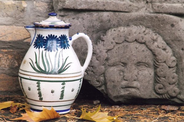 Kaffeekanne: Großmutters Küchenausstattung der 1930er Jahre, hier große, 3 Liter Kaffeekanne mit Deckel und schöner Handmalerei Blumendekor auf weißem Fond. Herkunft Bunzlau in Schlesien vor 1939. Sehr guter, unbeschädigter Erhatungs- und Gebrauchszustand. Maße: 20 cm Bauchdurchmesser; 29 H. Verfügbarkeit: 2 x sehr ähnliche Kaffeekannen dieser Art.