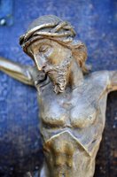 Corpus Christi 19. Jh.: Darstellung des Gekreuzigten mit Dorenenkrone im 3-Nageltypus, hier ohne Kreuz. Vollplastische Schnitzarbeit in Lindenholz in sehr feiner, Ausführung. Angesetze Arme, wie üblich - einige beschädigte Finger, sonst sehr guter Zustand. Maße: 35 cm B; 47 cm H. Gewicht: 300 Gramm. Verfügbarkeit: 1 x in dieser Ausführung; weitere Corpus Christi / Christus und Kruzifixe.