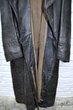 Mantel: Getragener, sehr dunkel blaugrauer Ledermantel eines Korvettenkapitäns 2. WK in Größe 52. Zweireihige, vergoldete Messingknopfreihe; Schulterstücke, schräge Seitentaschen mit Patten, Kunstseidefutter, darüber ausknöpfbares Innenfutter aus Wollstoff mit eingenähter Schlaufe für das Dolchgehänge. Hersteller (?). Monogramm PB im Dreieck. Herrenkonfektionsgröße: 52; Gesamtlänge 140 cm. Verfügbarkeit: 1 x in dieser Ausführung; ferner ein ähnlicher Leder- Militärmantel vom Hersteller Felwa.