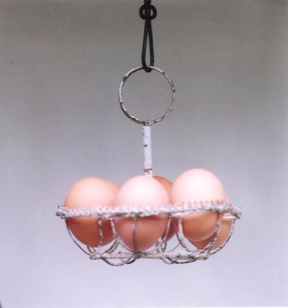 Körbchen: Nostalgisches Drahtkörbchen zum Aufbewahren von Eiern in der Küche. Das Körbchen fasst 6 Eier. PB Gewicht: 70 Gramm. Verfügbarkeit: 1 x in dieser Ausführung; weitere Körbe, Eierborde, Wandborde ,Körbe und Eierregale.