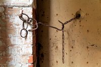 Von Hand geschmiedete Eisenkette mit Zubehör wie Haken für Töpfe und Kessel über einer offenen Feuerstelle. * Gewicht: 2500 Gramm. Verfügbarkeit: 1 x in dieser Ausführung; ferner 6 x Ketten in verschiedenen Längen und mit verschiedenen Zubehörteilen.