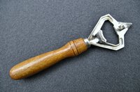 Flaschenöffner mit Dorn, auch zum Dosenöffnen: Rostfreier Edelstahl mit Holzgriff. Maße: 15 cm L; 4 cm B. Gewicht: 20 Gramm. Verfügbarkeit: 1 x in dieser Ausführung.