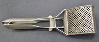 Notprodukt der Nachkriegszeit nach dem Motto "Not macht erfinderisch": Handmechanische Obst- und Gemüse-Passierpresse aus Aluminiumguss aus eingeschmolzenen Kriegsgeräten der Rüstungsindustrie. Funktioniert einwandfrei. Maße: 30 cm L; 10 cm B. Gewicht: 600 Gramm. Verfügbarkeit: 1 x in dieser Ausführung; weitere Notprodukte aus der Rüstungsindustrie.