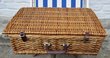 Korb / England: Stabiler Picknickkoffer aus Korbgeflecht für vier Personen, hier mit 4 Porzellantellern, 4 Trinkbechern, 2 Thermoskannen, 2 Kunststoffbehältern, 1 Flaschenöffner, 1 Dosenöffner; 4 Servietten sowie entsprechendem Edelstahl-Besteck. Maße Koffer: 60 x 40 x 20 cm. Gewicht: 6750 Gramm. Verfügbarkeit: 1 x in dieser Ausführung; weitere Picknickkoffer / Picknickkörbe.