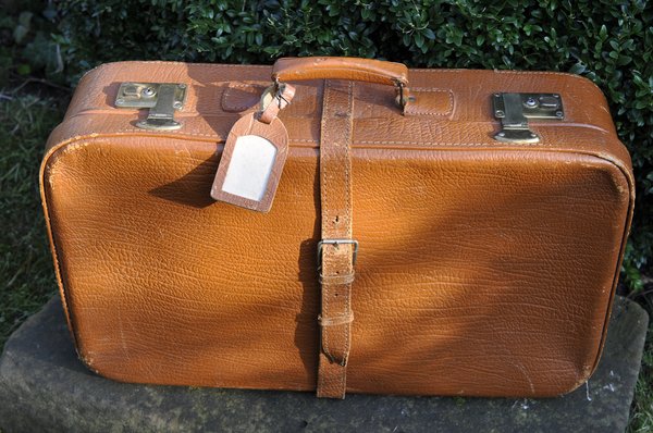 Koffer: Rotbrauner, genarbter Boxkalb-Lederkoffer der 1950er Jahre mit Messingschließen und umlaufender Lederlasche. Sehr guter und hygienischer Erhaltungszustand. Die Schlüssel zum Koffer sind nicht mehr vorhanden. Gewicht: 2750 Gramm. Verfügbarkeit: 1 x in dieser Ausführung.