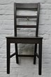 Stuhl: Zeitloser Vierpfosten-Holzstuhl in der urtypischen Stuhlform, hier Massivholz, braun gebeizt. Maße: 43 cm Sitzbreite; 41 cm Sitztiefe; 92 cm Gesamthöhe mit Lehne. Verfügbarkeit: 1 x in dieser Ausführung.