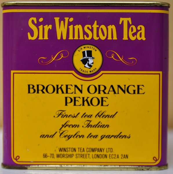 London: Englische 250-Gramm-Teedose der 1970er Jahre, beschrieben wie folgt "Sir Winston Tea / Broken Orange Pekoe". Maße: 10 x 10 x 10 cm. Gewicht: 100 Gramm. Verfügbarkeit: 1 x in dieser Ausführung; ferner weitere Blechdosen / Teedosen.