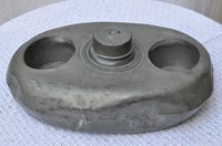 Bettwärmer: Mittelalterlich anmutende, sehr große und schwere Wärmflasche aus Zinn mit zwei so genannten "Ludenlöchern" zum Warmhalten von Baby-Milchflaschen. Gebrauchsspuren und Dellen im Zinn beeinträchtigen die Funktion der Wärmflasche nicht.* Gewicht: 2500 Gramm. Verfügbarkeit: 1 x in dieser Ausführung in Zinn; weitere Bettwärmer / Wärmflaschen.