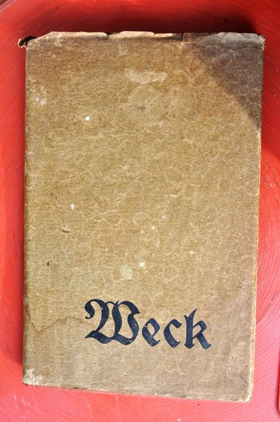 Weckglas: Diverse Rillen-Weckgläser mit unterschiedlichem Fassungsvermögen der Firma "Weck" und anderer Hersteller, z.B. "Monopol"; "Parfait"; "REX" usw. Maße: 1 1/2 Liter Glas Weck: 11 cm Bodendurchmesser; 20 cm H. Gewicht: 650 Gramm. Verfügbarkeit: ca. 50 x diverse Einkochgläser; Einmachgläser; Weckgläser von versch. Herstellern der 1920er bis 1960er Jahre.