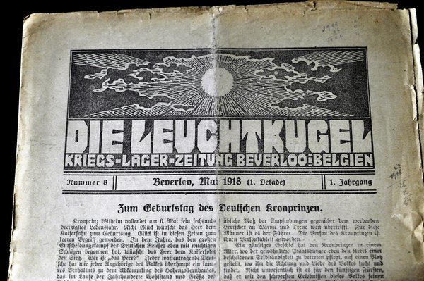 Zeitung: Vollständige Ausgabe "Die Leuchtkugel" / Kriegs-Lager-Zeitung Beverloo i. Belgien, Nummer 8 Beverloo, Mai 1918 mit Leitartikel "Zum Geburtstag des deutschen Kronprinzen".